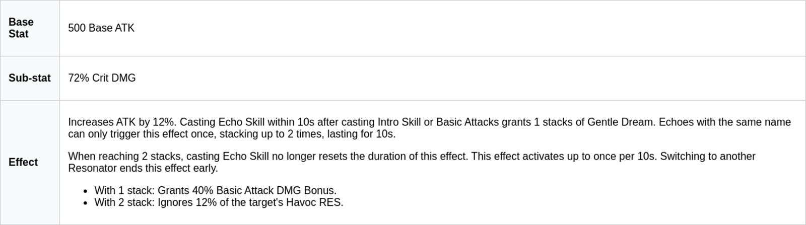 Cosmic Ripples, a five-star rectifier, offers essential enhancements for Cantarella's combat efficiency. It provides a steady energy regeneration rate, enabling more frequent use of her resonance liberation, and boosts her basic attack damage, complementing her overall damage output. Since her ultimate damage scales with her basic attack, Cosmic Ripples' enhancements directly amplify her burst potential.
