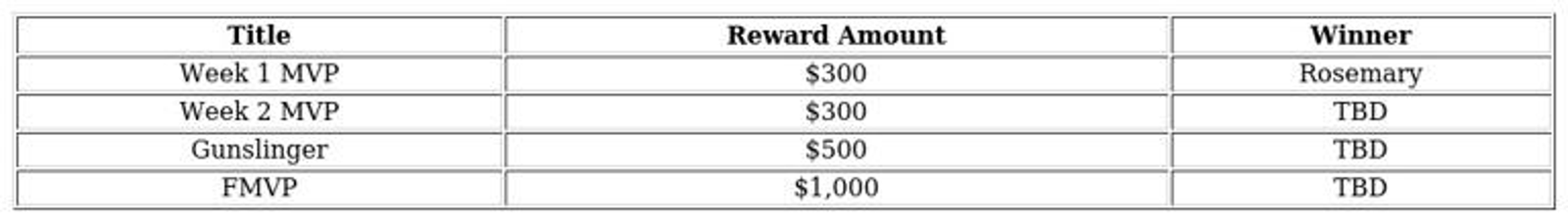 Details regarding the total prize pool remain undisclosed at this time. We will provide updates as soon as the official figures are released. In addition to the team-based rewards, there are special accolades designated for standout players demonstrating exceptional performance. The following are the individual awards up for grabs: