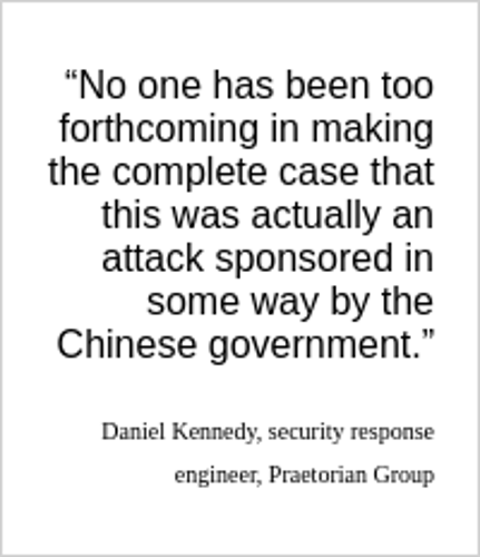 Security experts, such as those at Praetorian, have been questioned on how Google quickly attributed the attack to China. They note that Google and its security partners have not publicly detailed their methods, but suggest that the identification likely involved tracing SSL connections back to an IP address in Taiwan, which was then linked to Chinese activity through network analysis. This underscores the complexities and uncertainties inherent in attributing cyberattacks to specific nation-states amidst proxy tactics and international cyber diplomacy.